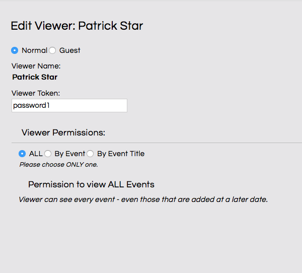 There is one last page you can visit as a Viewer on the EVM. While you’re on the Events List page, in the upper left corner of the page on a computer and under the Menu in the upper right on a mobile device is an item titled “User." The User menu is where you can change the settings for what the system displays on both the Events List and in the individual events themselves. Let’s go to the settings page by selecting View Settings under the User menu. When you arrive on this page you’ll see a number of items that you can edit. You can change your Viewer Token, or password, for logging into the EVM. Below that you will see Viewer Permissions. The options are “All,” “By Event” and “By Event Title.” If you wish to see ALL of the shows in the Events List you can leave this option as your default. However, if you are only associated with a particular event select the last option... “By Event Title.” When you click that radio button a list of the show titles appears and you can select which show or shows you wish the system to display. In this case you can select multiple shows to view and leave the other shows blank. When you return to the Events List, only the shows that you select here will appear on the page. Lastly, if you only want to see specific events displayed in the Events List, click the “By Event” option and a list of ALL of the currently booked events will be shown. Click the event or events that you wish to see on the Events List. Now only those events will appear.