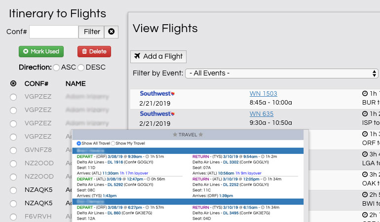 Create your flight information directly from your flight itinerary/receipt. A real time saver for adding flight data to your events.