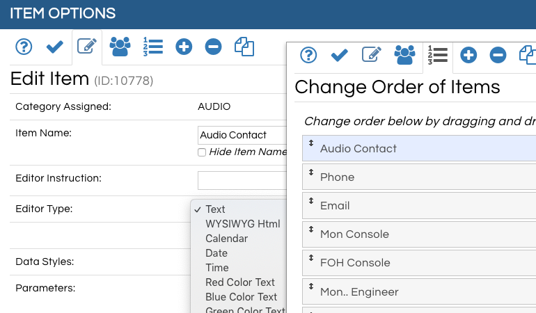 EVM Live allows you to place your event data in colored panels with names that you choose. You can then add the data in each panel as is needed per event. So, imagine that you have a list of items that audio needs for an event. On the next event these items are not needed. But in some event programs you would need to add particular items to the list and carry them over to every event even if they are not needed. This can be confusing and feels awkward as you try to sort out ALL of the data for your events.