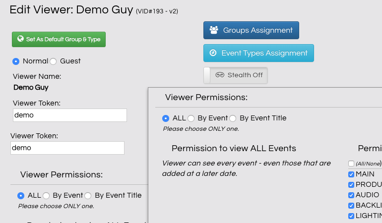 Imagine that you have interns that assist you in your events and you don't want them to see everything - it might confuse them! No problem. EVM Live lets you configure viewers to see only what they need to see. Viewers can be set to see only a single event on a single date if that's what you want. Or...they can see a specific collection of events. If you have events that you have added that use a single title: "Training Seminar" for example, then your viewer can be configured to only see events that are of the type "Training Seminar". Of course maybe you want to allow them to access all of your events and that is ok too. You decide!